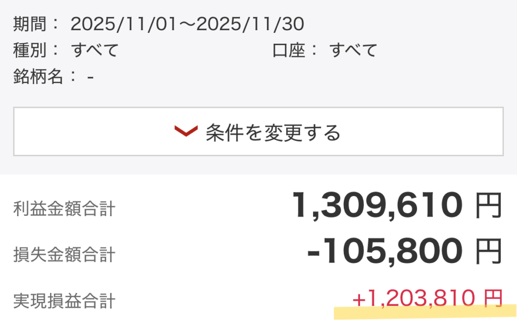 こんにちは。やっと11月の実現損益と配当金を確認したので記録を残します。